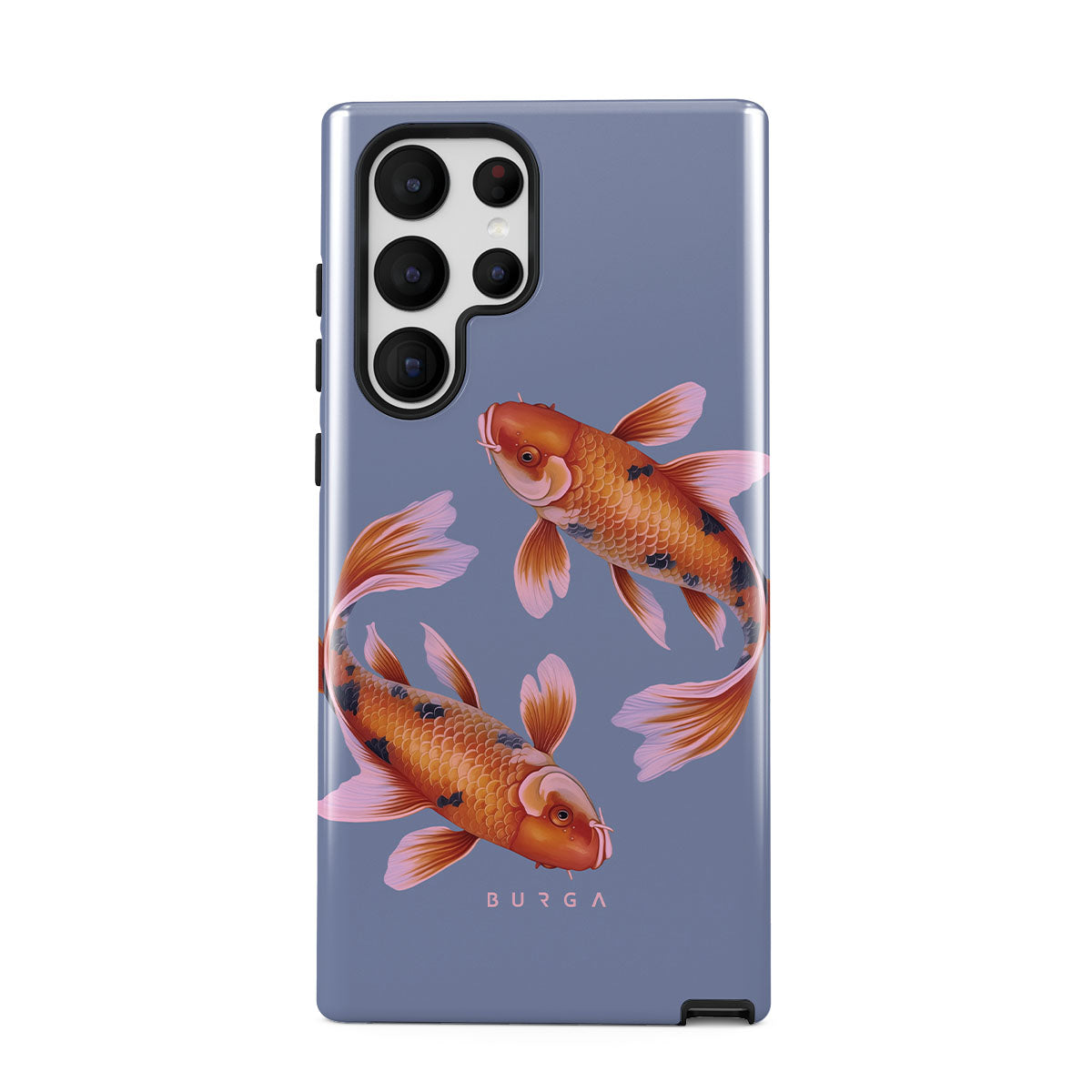 In the embrace of serene blue, the golden koi swirl, a symbol of life's fluid nature and the grace of going with the flow. Their dance is a serene meditation on the currents of destiny and the elegance of adapting with purpose. Discover our Zen Samsung Galaxy S22 Ultra phone case design.