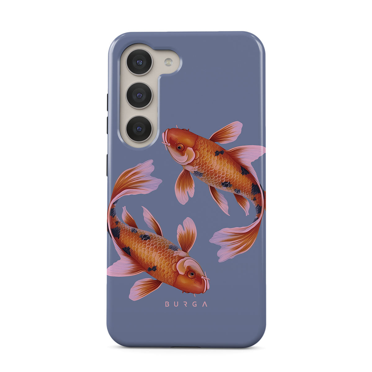 In the embrace of serene blue, the golden koi swirl, a symbol of life's fluid nature and the grace of going with the flow. Their dance is a serene meditation on the currents of destiny and the elegance of adapting with purpose. Discover our Zen Samsung Galaxy S23 Plus phone case design.