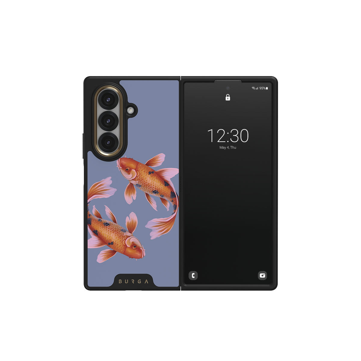 In the embrace of serene blue, the golden koi swirl, a symbol of life's fluid nature and the grace of going with the flow. Their dance is a serene meditation on the currents of destiny and the elegance of adapting with purpose. Discover our Zen Samsung Galaxy Z Fold 7 phone case design.